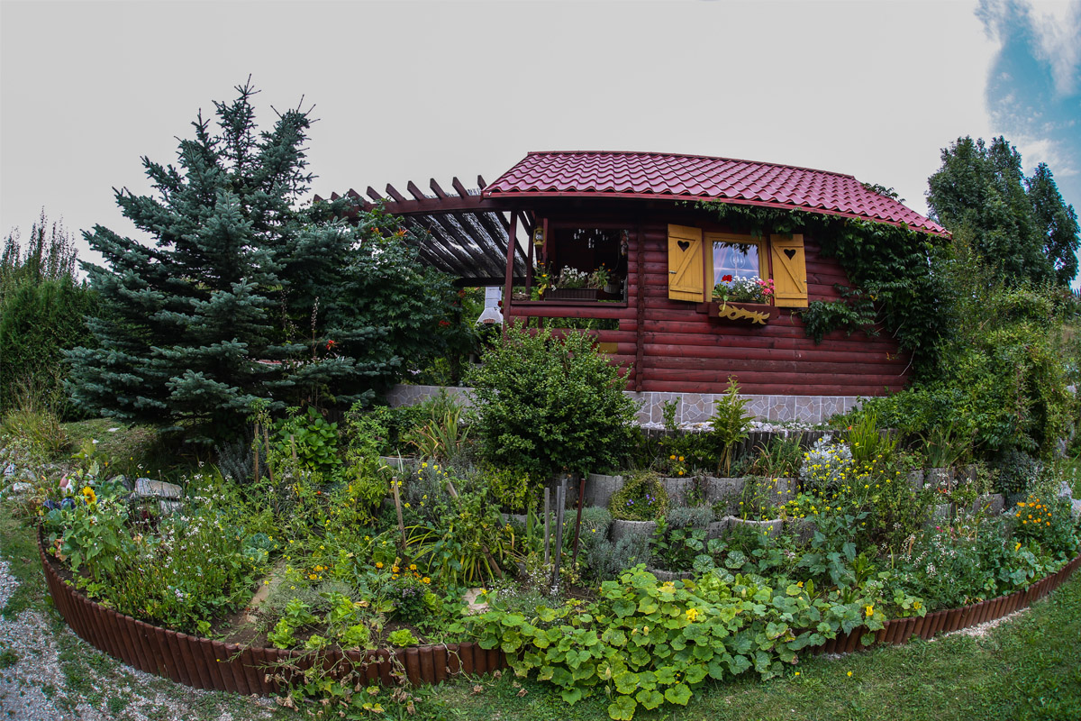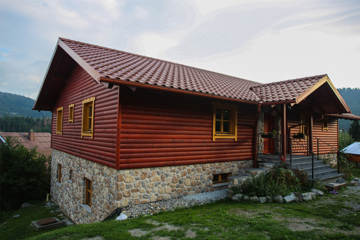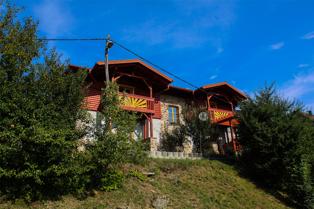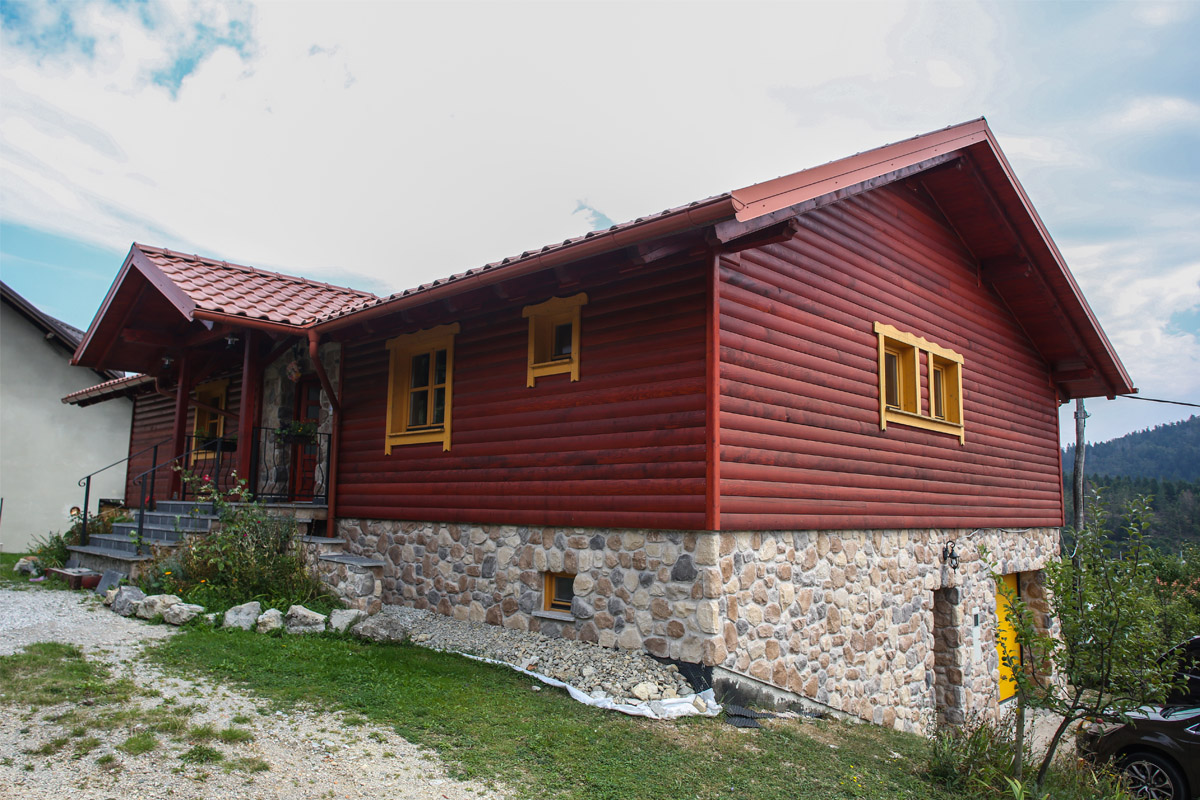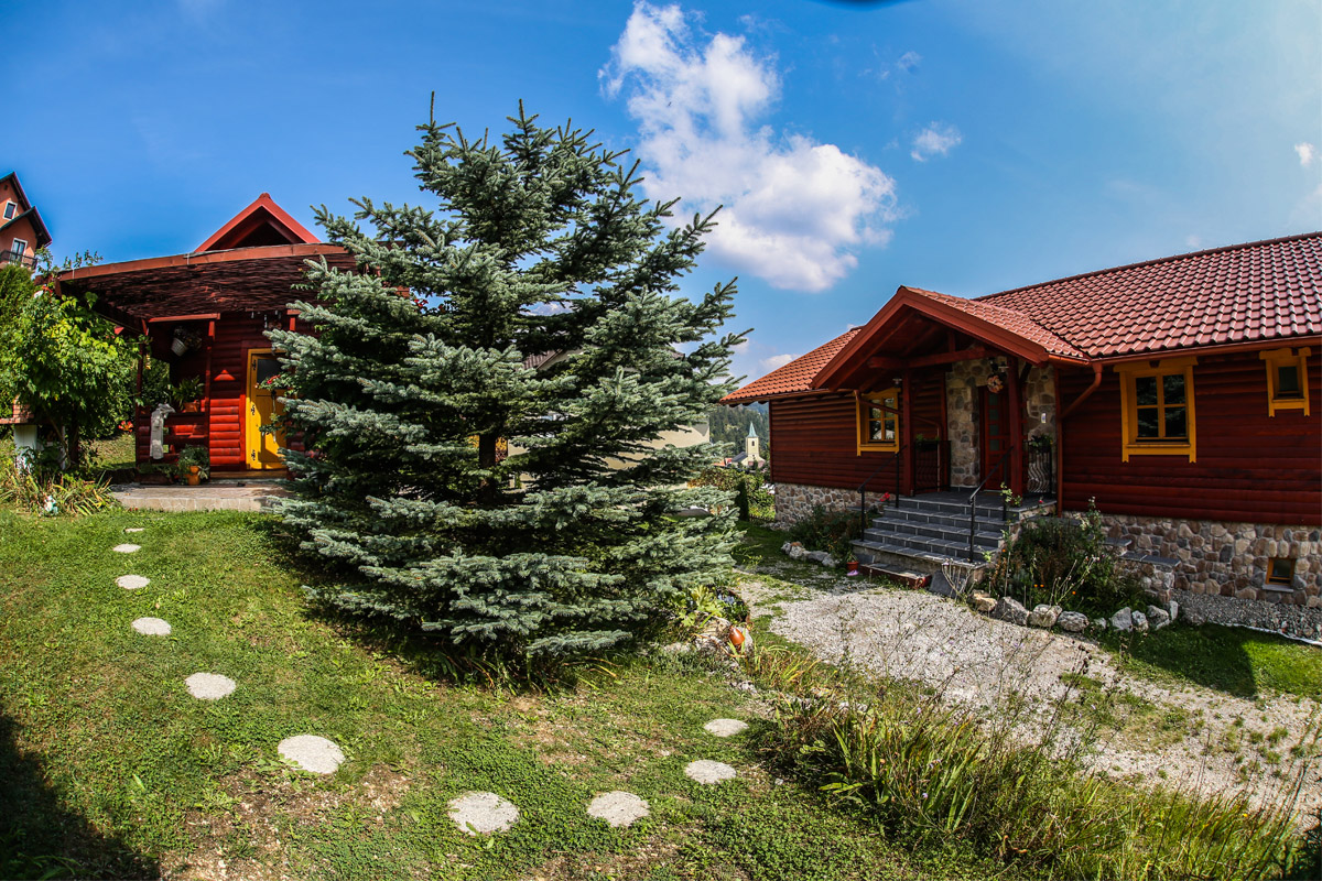 Velika i prostrana drvena kuća na kamenoj suterenskoj etaži, nazvana Goransko sunce, koju krasi veliki, šareni vrt prepun cvijeća i prirodno uzgojenog voća i povrća ispred malene drvene kućice, s kamenim roštiljem, idealnim za dječja noćenja i/ili druženja uz roštilj.