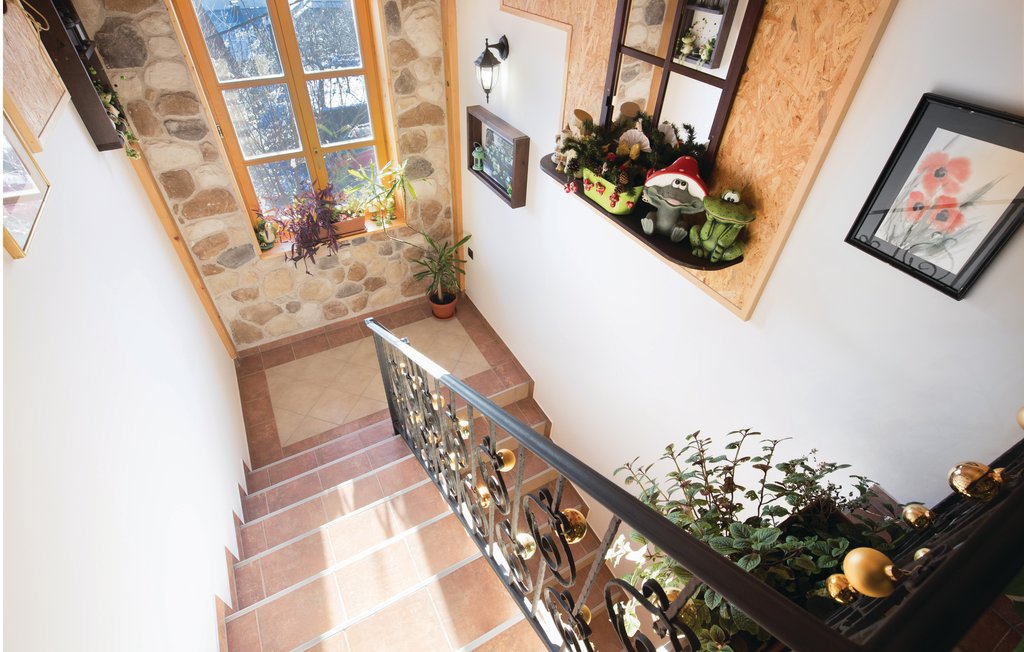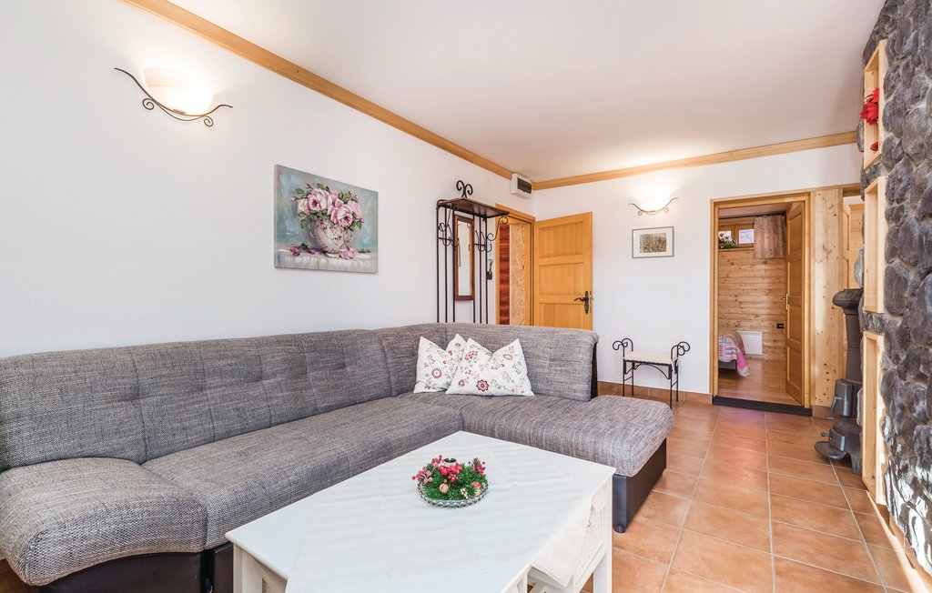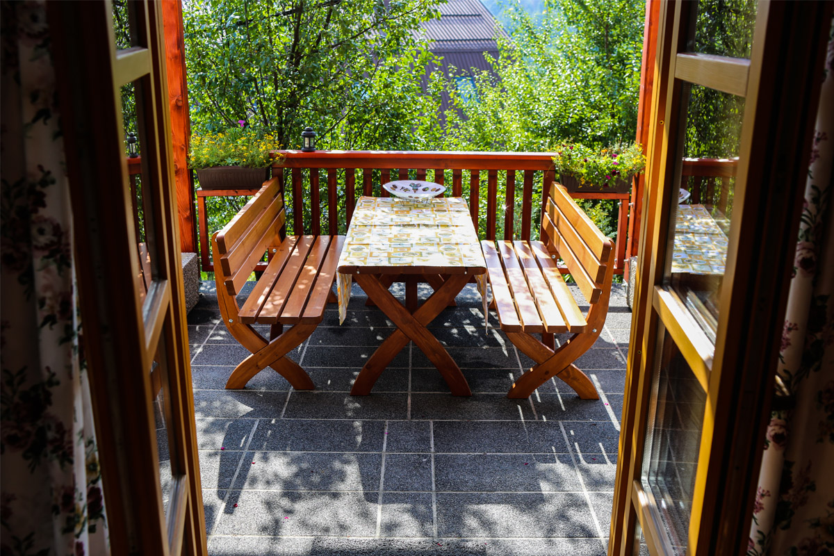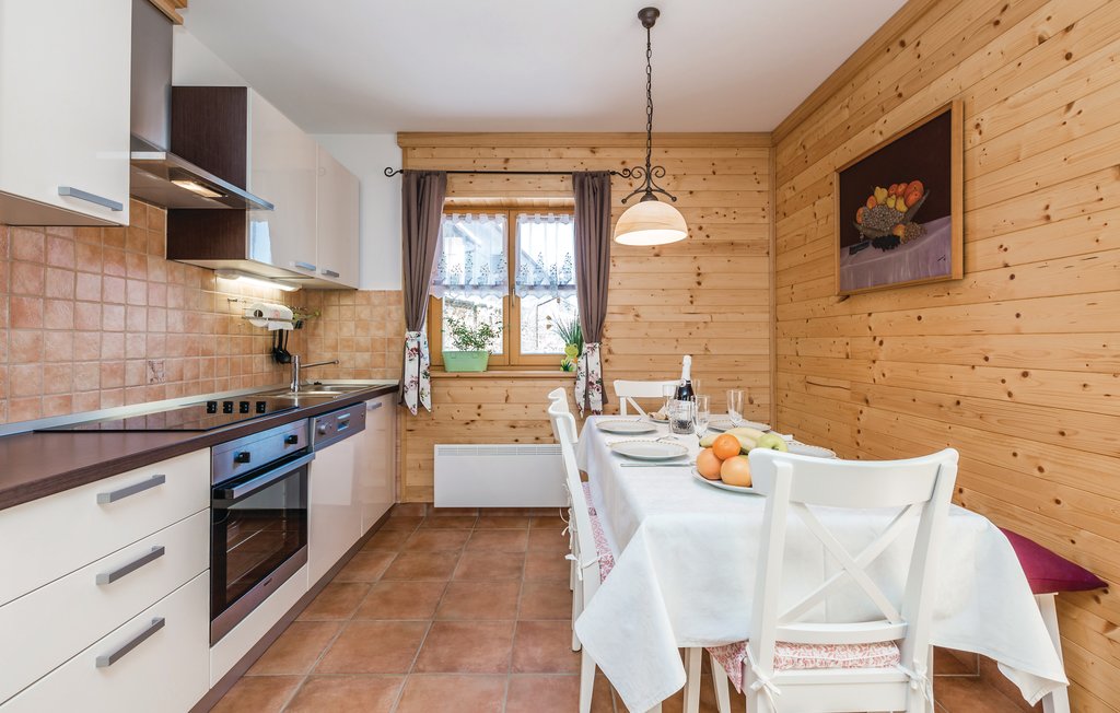 Iz dnevnog se boravka izlazi na polunatkrivenu terasu s velikim stolom i pogledom na predivnu prirodu koja nas okružuje. Tijekom zimskih mjeseci grijanje preporučamo pomoću predivne peći na drva koja se nalazi u središtu apartamana, ali postoji i opcija grijanja na konvektore (električne radijatore).