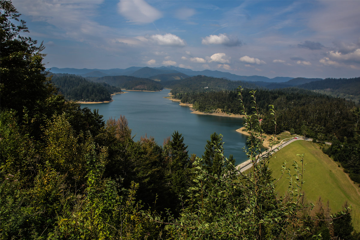 Pravi dragulj goranskog kraja, umjetno jezero s pitkom vodom u kojoj se tijekom ljetnih mjeseci ljudi rado osvježe. Okruženo je brdima i šumom, a zajednička refleksija njih i neba jezeru daje prekrasnu plavkastozelenu boju. Po jezeru plovi splav "ČAČA", koja vozi ljude na razgledavanje i s koje svira muzika, a postoji i uređena šetnica oko jezera na kojoj se već tradicionalno svake godine, početkom kolovoza, održavaju manifestacije POJ (Pješice oko jezera) i BOJ (Biciklom oko jezera). Ovo je idealno mjesto za sve ljubitelje šetnji, kupanja, pecanja, ali i hrane, budući da se u blizini nalazi restoran u kojem možete kušati poznate lokvarske žablje krake. Zabavna činjenica jest ta da je ljepota ovog jezera privukla redatelja Luca Bessona da na njemu snimi svoj film „Jezero“.